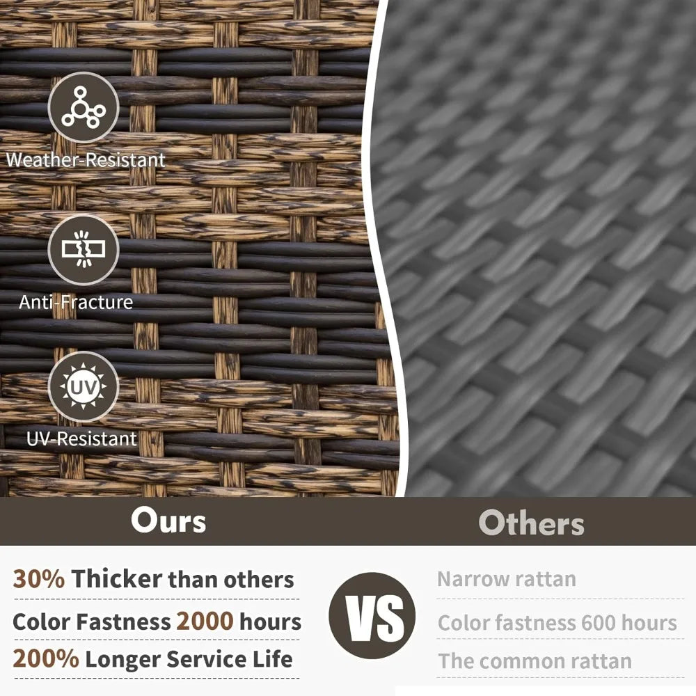 - All-weather durability: Built with a powder-coated steel frame and hand-woven PE rattan, this outdoor furniture is weather-resistant, rustproof, and designed to withstand all seasons.