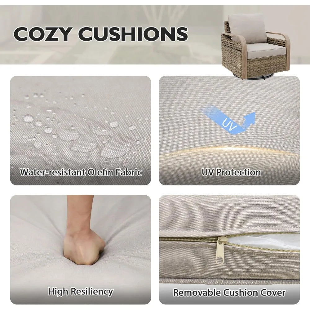 Experience the perfect blend of style and comfort with the Modern Wicker Outdoor Glider Rocking Chair Swivel 2 Chairs set. This two-piece patio ensemble brings minimalist modern design, lush wicker texture, and a soothing motion that invites you to unwind outdoors.